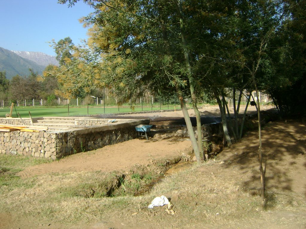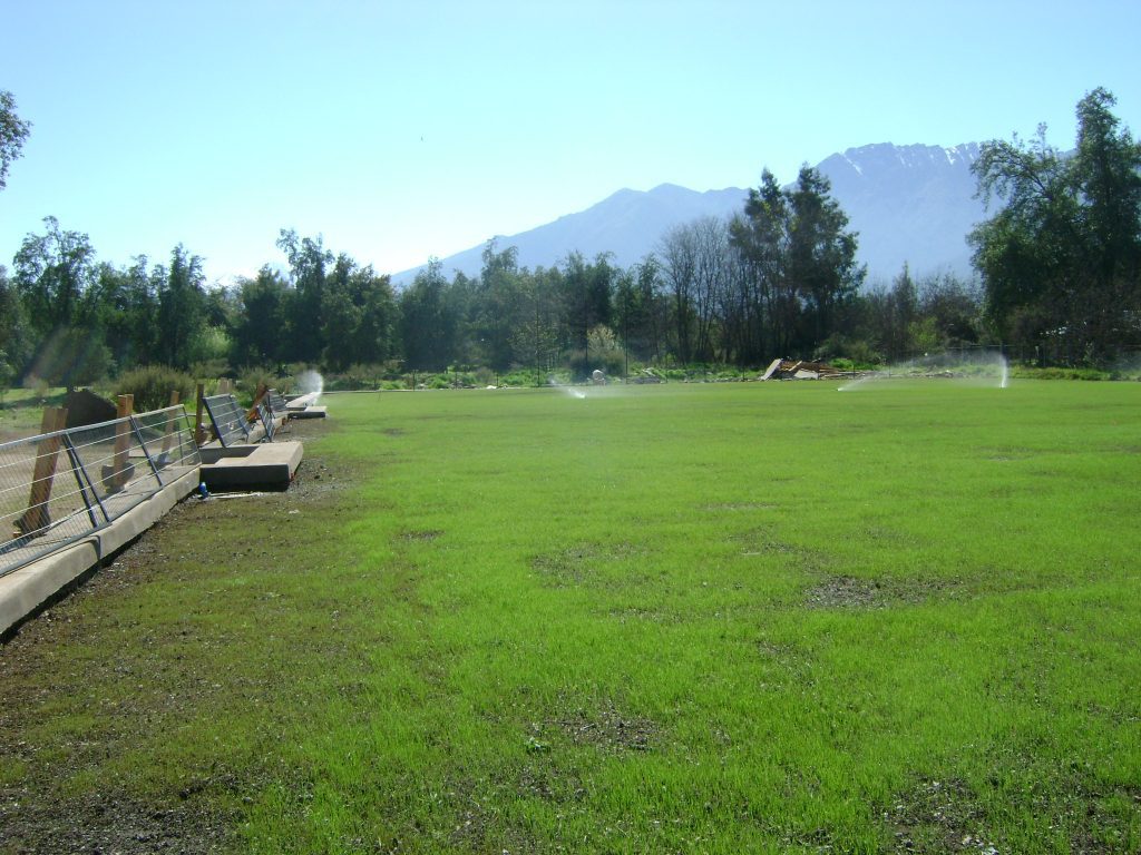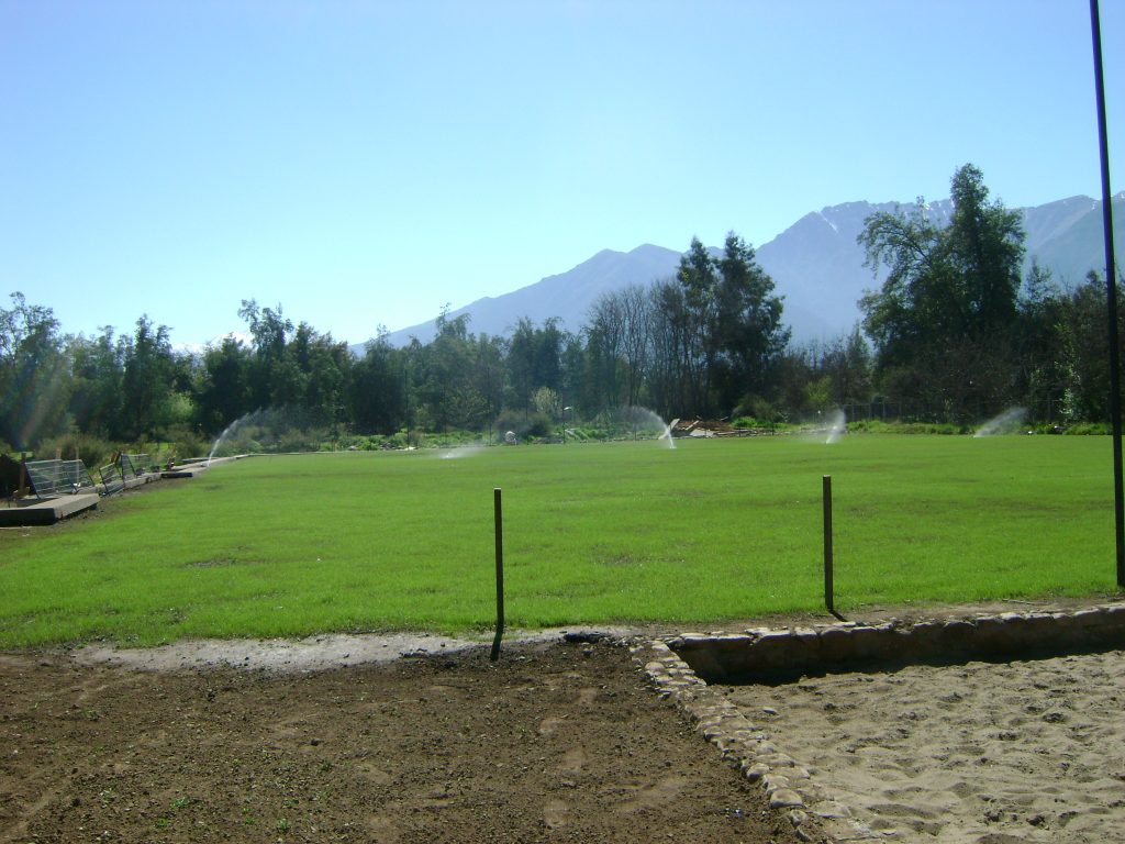 Thank you for your prayers for the ministry at Camp Pirque near Santiago, Chile. The grass is starting to grow on the soccer field.  The irrigation system is working manually for right now, and we are hoping to have it on automatic soon. We are building a cage rock wall around the pool area. There were some big rocks leftover from the front wall project that are being removed so the front area will look clean.