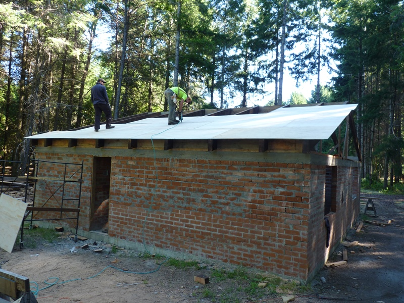 The new cabin on camp is getting its roof. We are thankful for a roof over our heads!