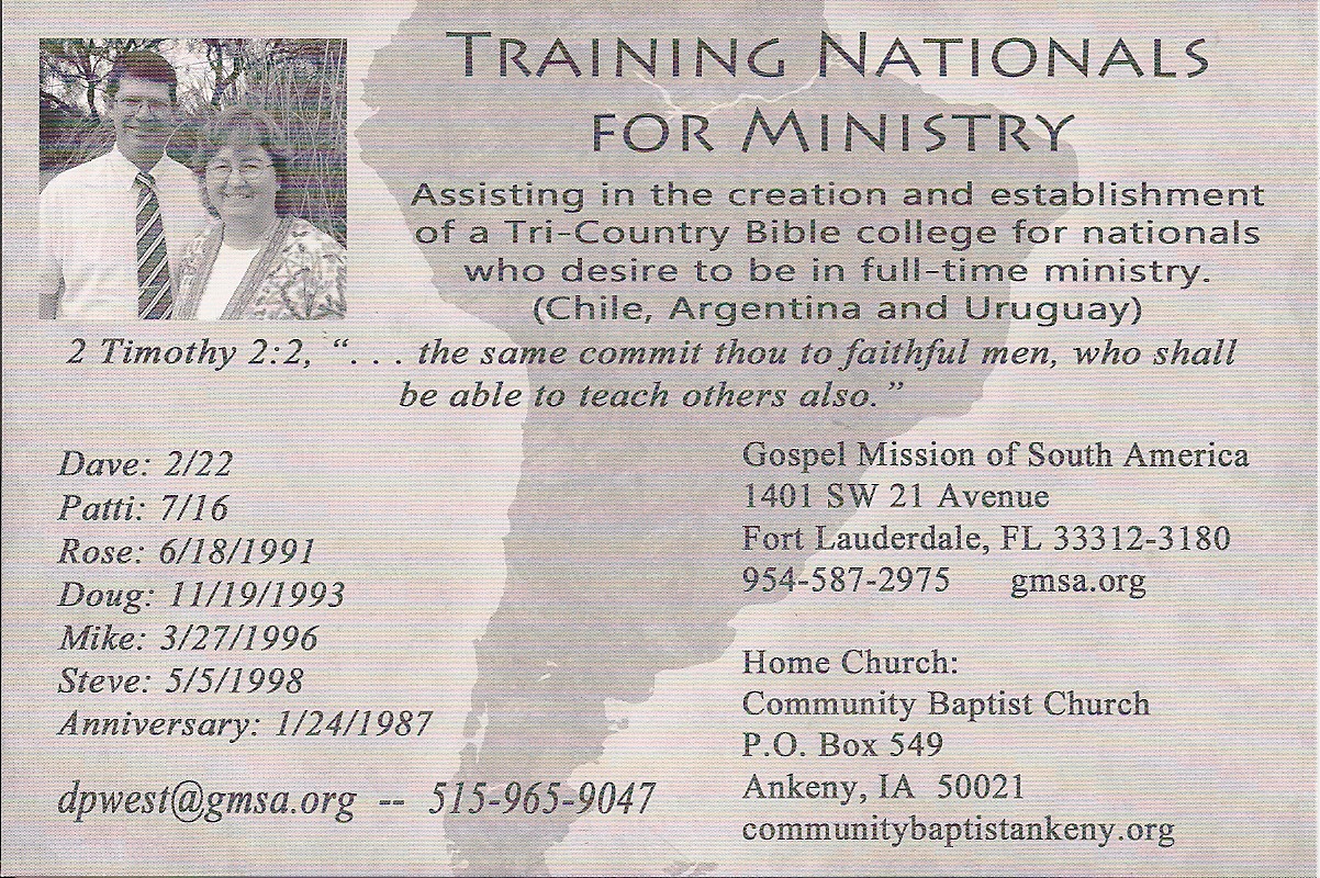 David & Patti West - Argentine Bible College Ministry
