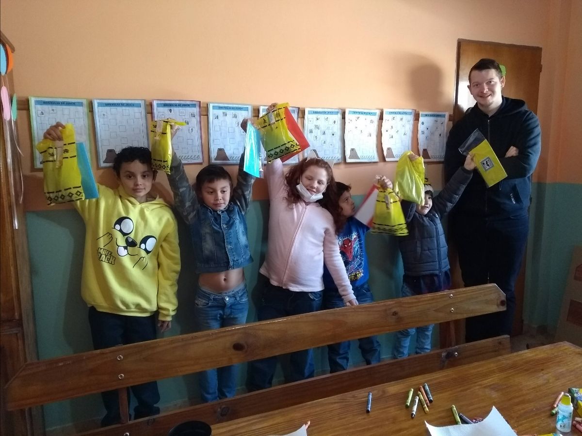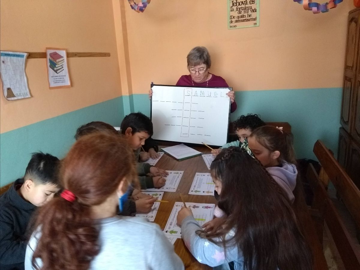 Patti continues to enjoy teaching the 6-9 year olds with the help of Michael. The top left picture was on Father’s Day and they are holding up their gifts for their fathers or grandfathers. In the top right picture, the children are putting the plagues in order. In August, Día del Niño was celebrated, Children’s Day, and the lesson was on children in the Bible.