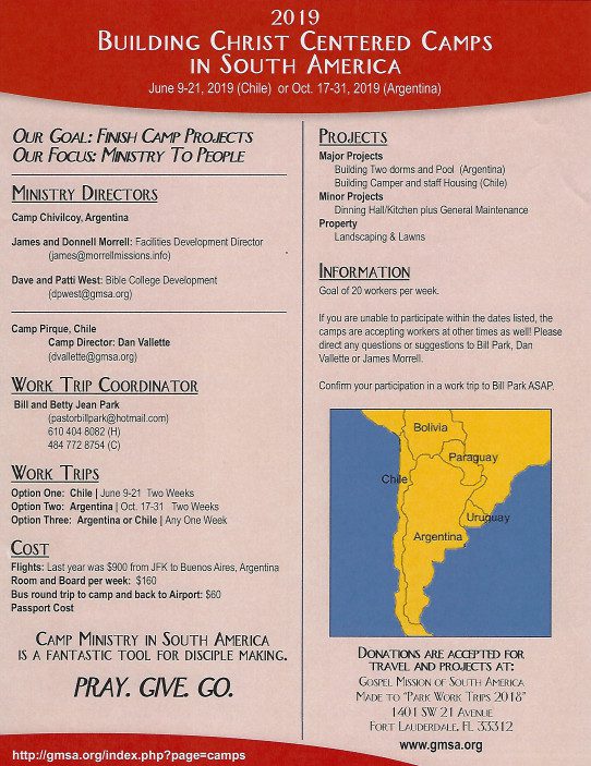 Every year GMSA schedules trips from the US, UK, and Canada to Chile, Argentina, and Uruguay. This year there is a trip scheduled to Chile from June 9-21 and to Argentina from October 17-31.