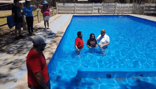 Pictured above is a baptism service and Sunday school picnic held at the local camp, El Molle, Dec. 9. On Dec. 23 they held a Sunday school Christmas program, to a packed church yard. There were 100+ attendance. We had to move outside—no room in the inn-side!